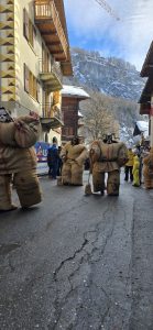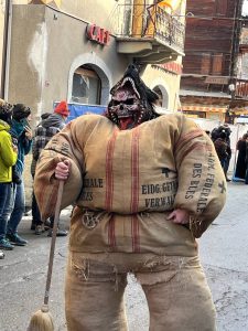 Le jour du grand cortège, le village fonctionne comme un organisme uni. Masques sculptés, cloches, peaux, feu, musique et rires — chaque élément a une signification. On y parle le patois local, on valorise la race de vaches d’Hérens, et les rôles comme les costumes se transmettent de génération en génération.