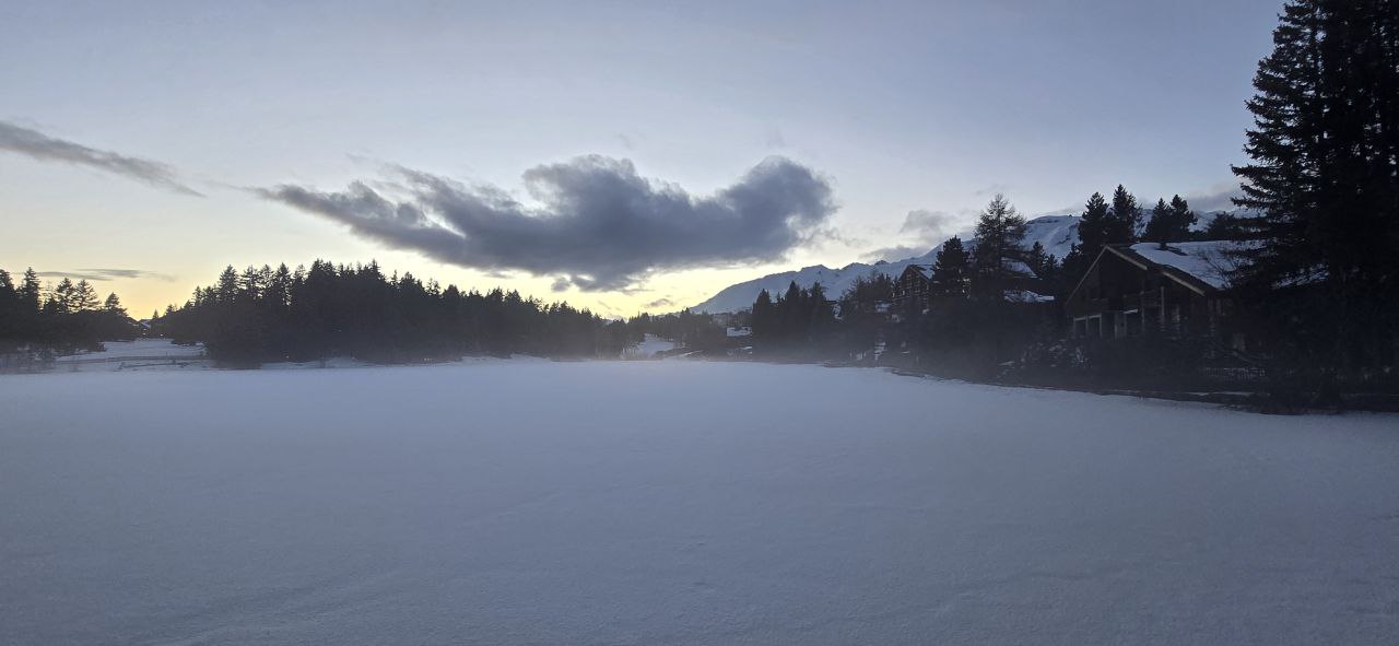 En petit groupe, nous avons parcouru les sentiers autour de Crans-Montana — parfois enneigés, parfois glacés, demandant attention et présence. Le chemin s’ouvrait sur de magnifiques panoramas de la vallée du Rhône et des pentes montagneuses environnantes.