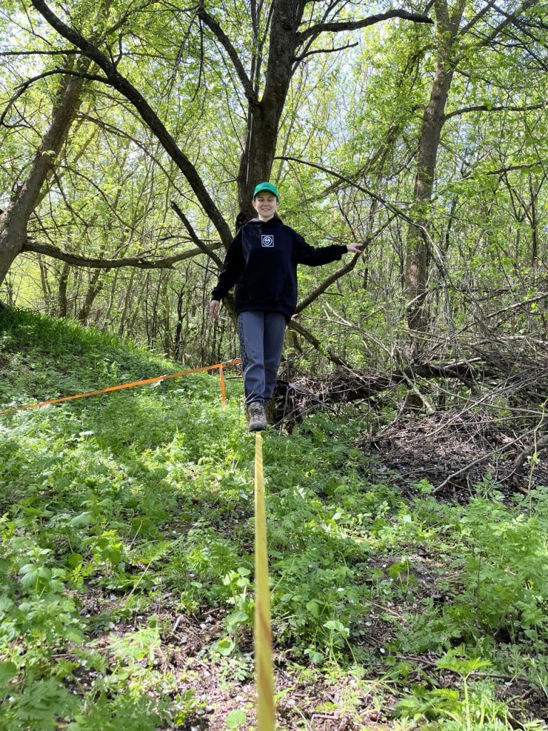 Activités d’équilibre en plein air – slackline, ponts suspendus, bûches d’équilibre – stimulant la coordination, la présence à soi et la force intérieure à travers le mouvement conscient.