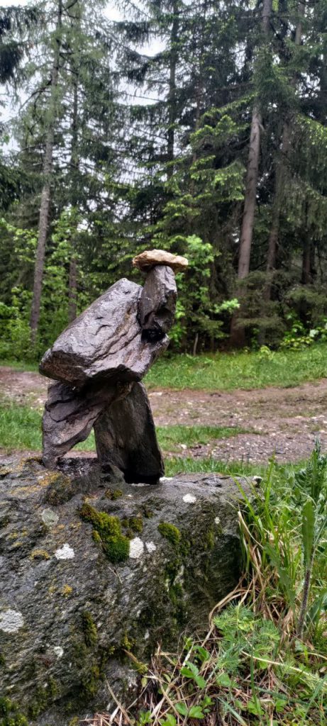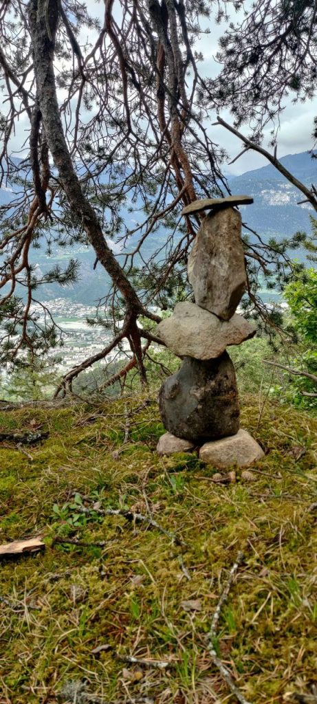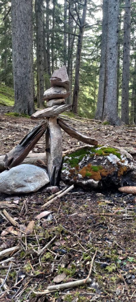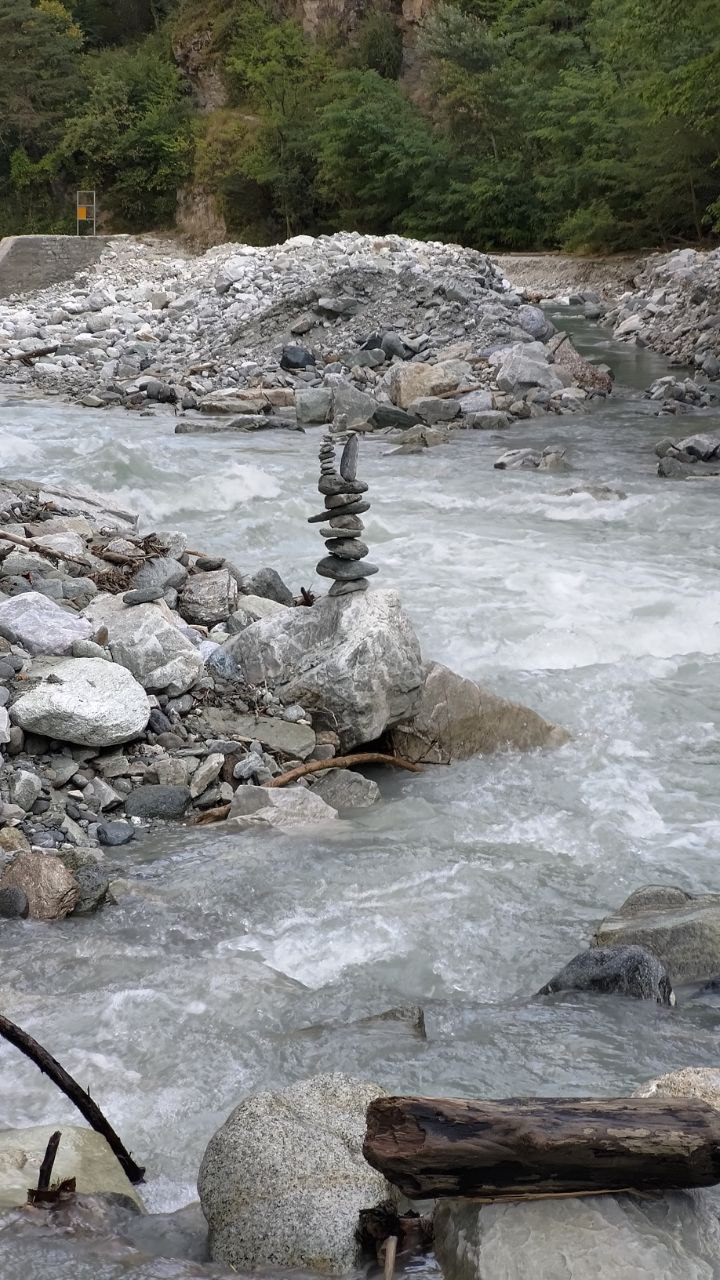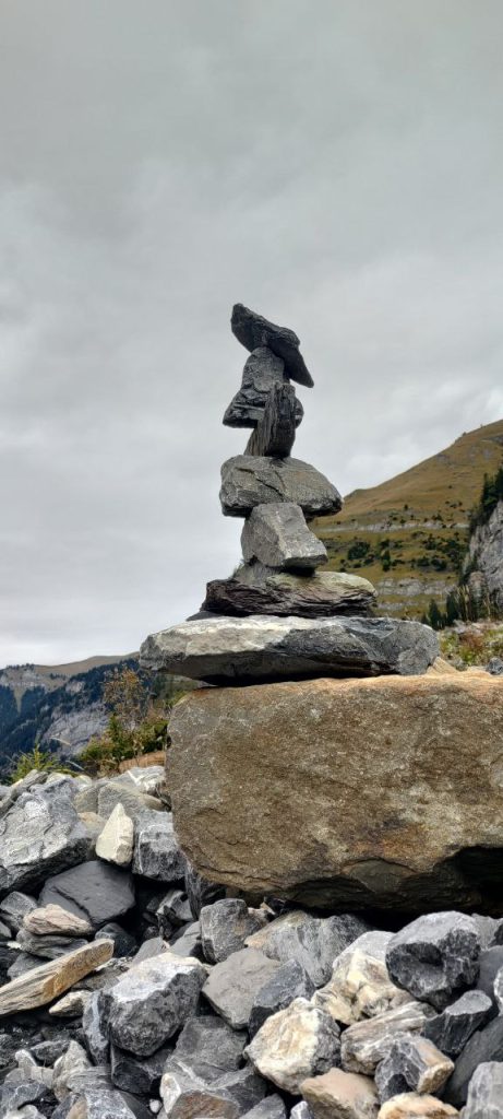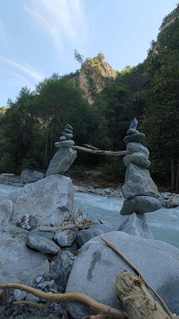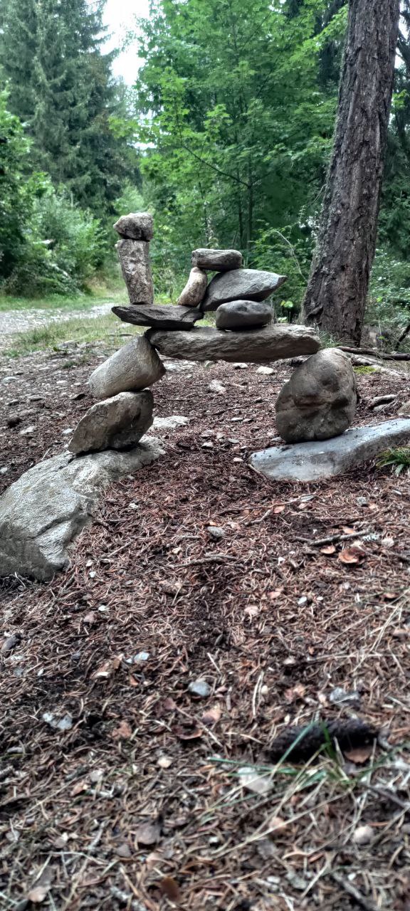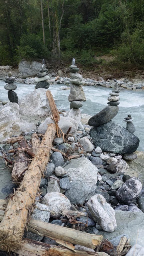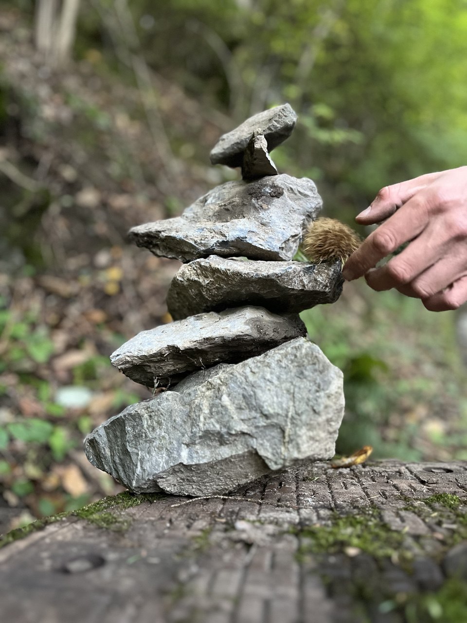 Espace méditatif où les participants peuvent construire des pyramides de pierres, renforçant la patience, la créativité et la stabilité intérieure.